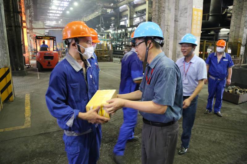查看更多 >>圖為薛國俊董事長向鑄造廠員工送上慰問品