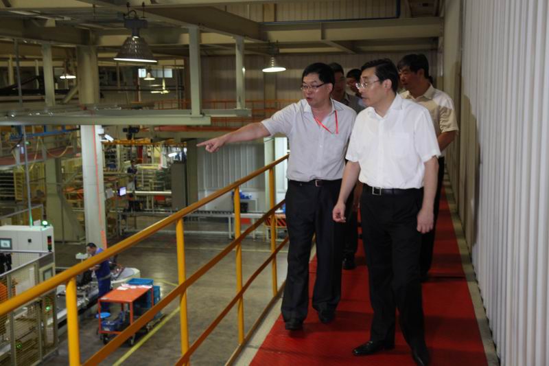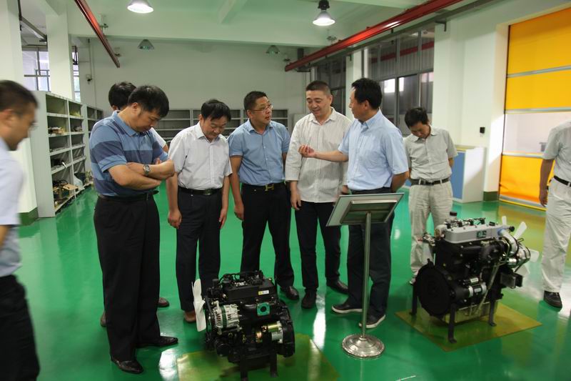 圖為常州市市長費高云(右)參觀常柴多缸機智能車間