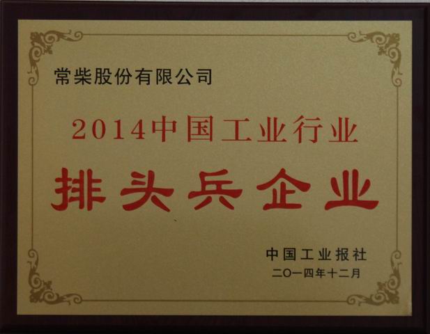 常柴上榜2014中國工業(yè)行業(yè)排頭兵企業(yè)