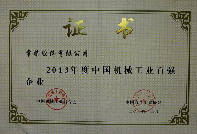 2013年機(jī)械工業(yè)百?gòu)?qiáng)發(fā)布常柴位列81位,排名上升6位