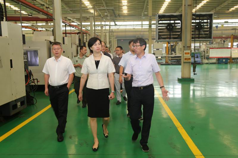 圖為劉敏書(shū)記(中)一行參觀了公司機(jī)加工廠試制車間