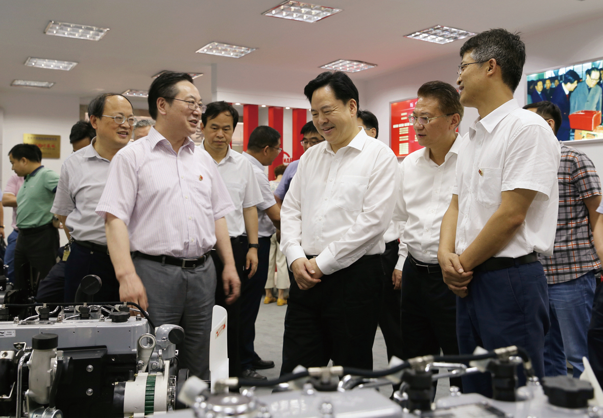 在調(diào)研過程中,陳金虎市長(zhǎng)一行深入機(jī)加工廠試制車間、重大專項(xiàng)車間,詳細(xì)聽取了公司董事長(zhǎng)史新昆關(guān)于近年來常柴主營(yíng)業(yè)務(wù)發(fā)展、轉(zhuǎn)型發(fā)展和資本運(yùn)作情況的匯報(bào),仔細(xì)了解公司產(chǎn)品的品種機(jī)型、生產(chǎn)程序、配套情況、銷售情況等。在技術(shù)中心排放試驗(yàn)室,陳金虎市長(zhǎng)饒有興趣地了解了公司研發(fā)的新型樣機(jī)產(chǎn)品,詢問了其配套領(lǐng)域和市場(chǎng)前景,對(duì)公司在加快產(chǎn)品轉(zhuǎn)型升級(jí),不斷開拓新領(lǐng)域、新市場(chǎng)的做法表示肯定。在公司產(chǎn)品展示廳,董事長(zhǎng)史新昆、總經(jīng)理張新分別向陳金虎市長(zhǎng)一行介紹了公司單、多缸柴油機(jī)重點(diǎn)機(jī)型的生產(chǎn)、銷售情況。陳金虎市長(zhǎng)對(duì)常柴近年來發(fā)展所取得的成績(jī)表示贊許,他指出,常柴是百年企業(yè),曾經(jīng)創(chuàng)造過輝煌的歷史,是全國(guó)農(nóng)機(jī)行業(yè)第一家上市公司,也是常州第一家上市公司,多年來積淀了厚實(shí)的企業(yè)文化底蘊(yùn),這些成績(jī)的取得離不開常柴全體干部員工的拼搏和努力,目前,企業(yè)已處于關(guān)鍵的歷史轉(zhuǎn)折點(diǎn),要承接好前幾年轉(zhuǎn)型發(fā)展的動(dòng)能和優(yōu)勢(shì)。
