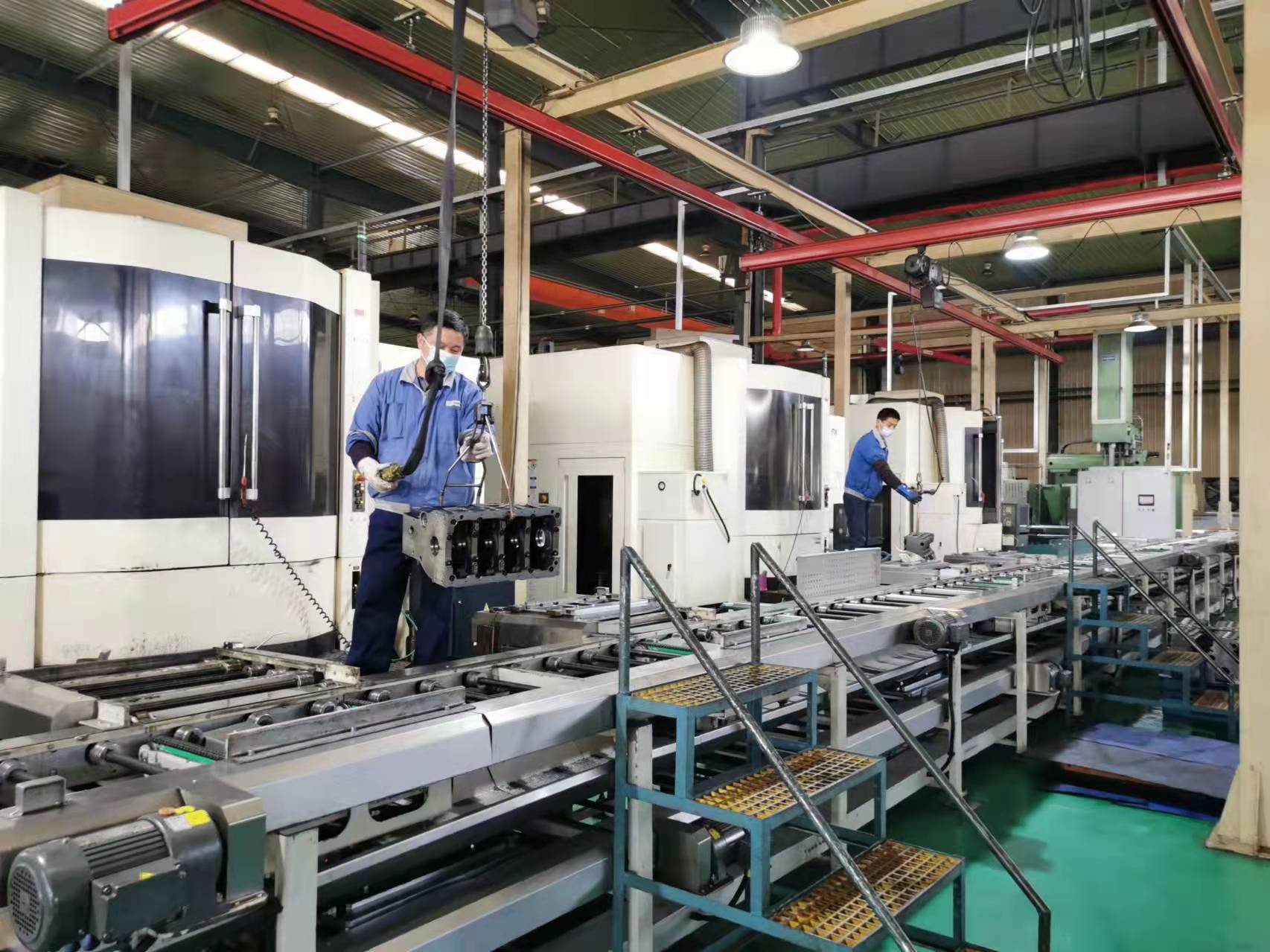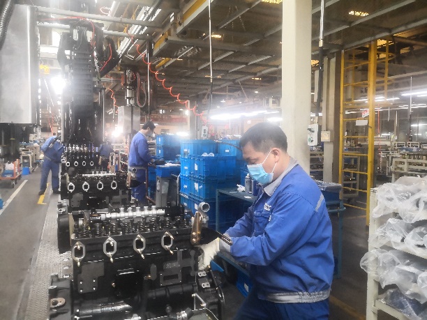在多缸機(jī)廠總裝車間,員工在復(fù)工后立馬投入到繁忙的生產(chǎn)中,緊鑼密鼓趕制訂單助力春耕市場(chǎng)。
