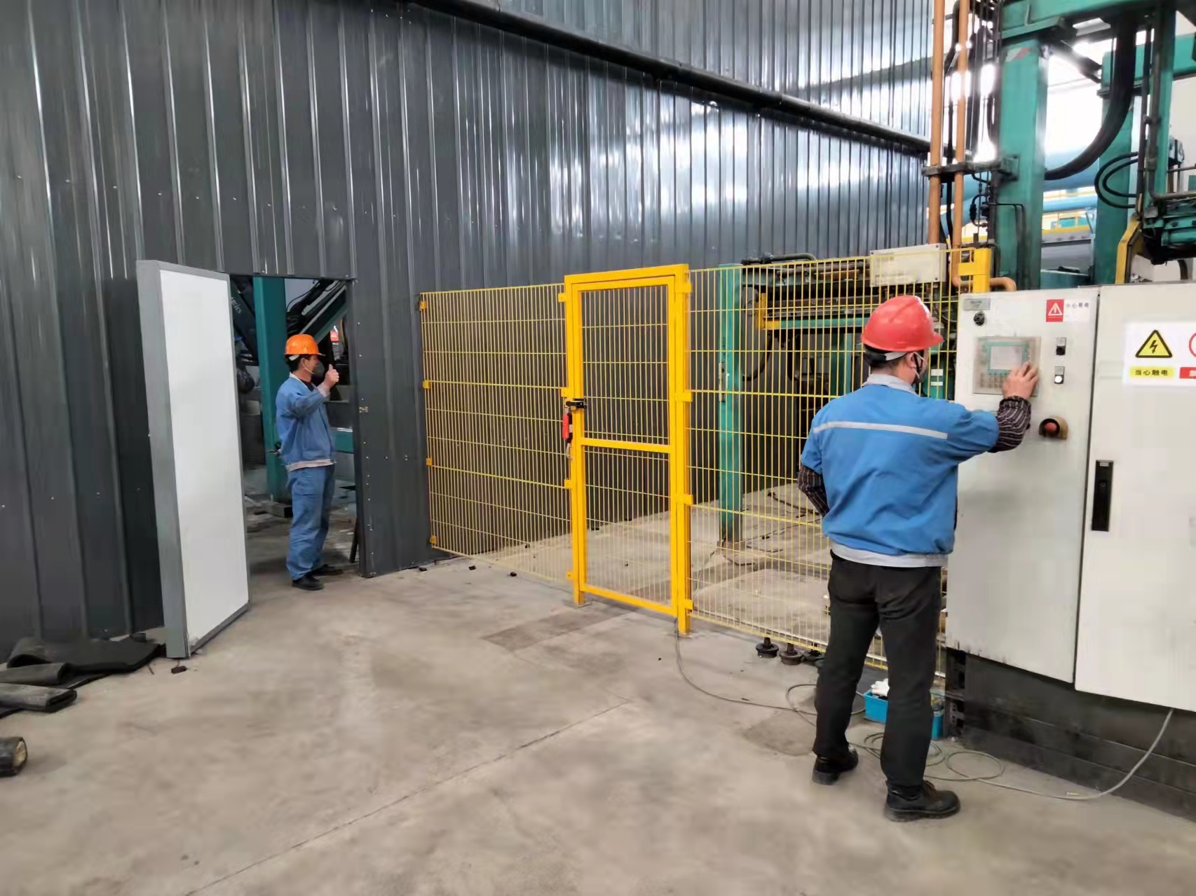 在新工業(yè)園鑄造基地KW線上,員工們爭(zhēng)分奪秒、相互配合著進(jìn)行設(shè)備調(diào)試,加快調(diào)試進(jìn)程。