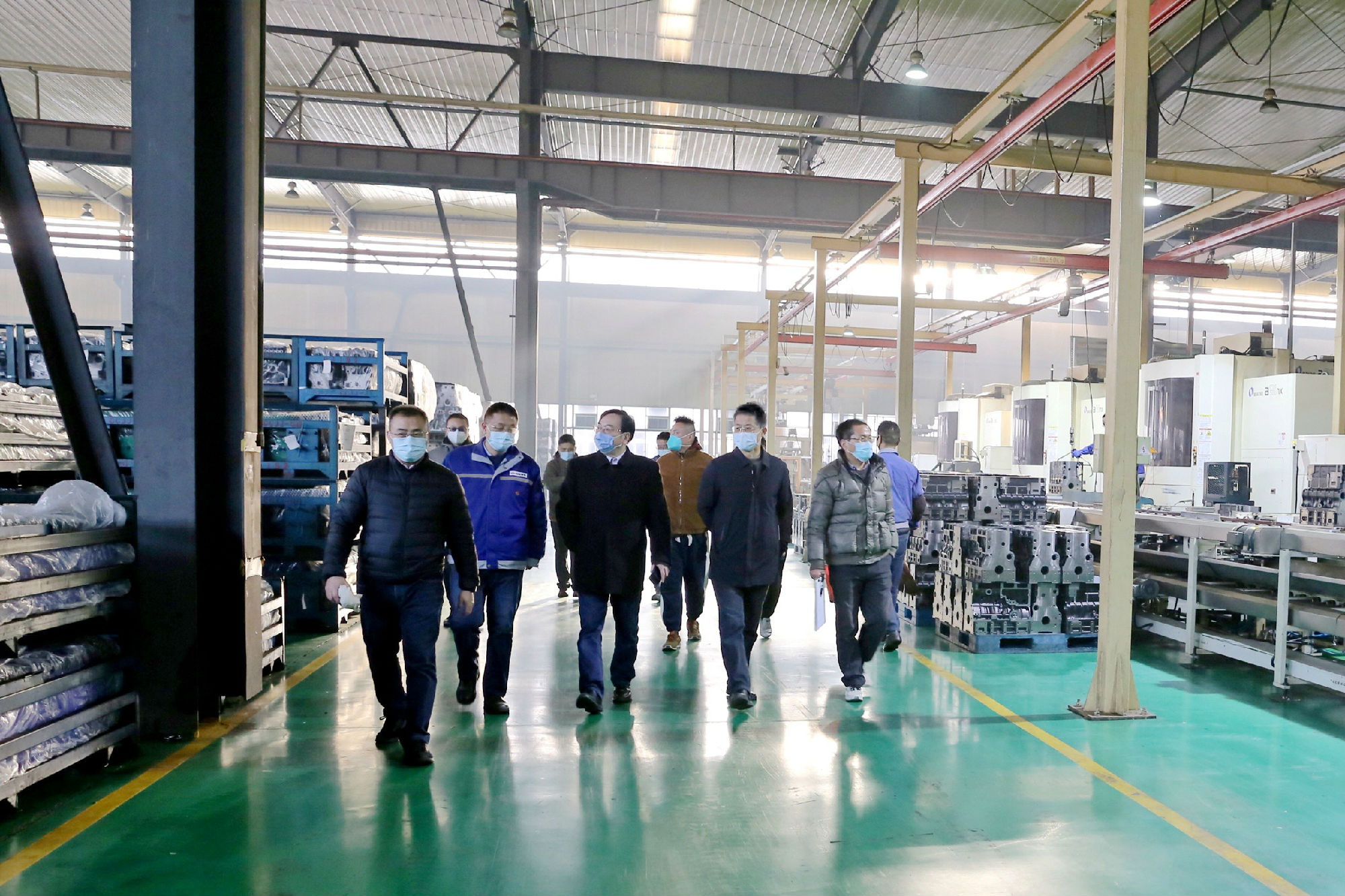 圖為公司領(lǐng)導(dǎo)一行檢查機(jī)加工廠生產(chǎn)現(xiàn)場